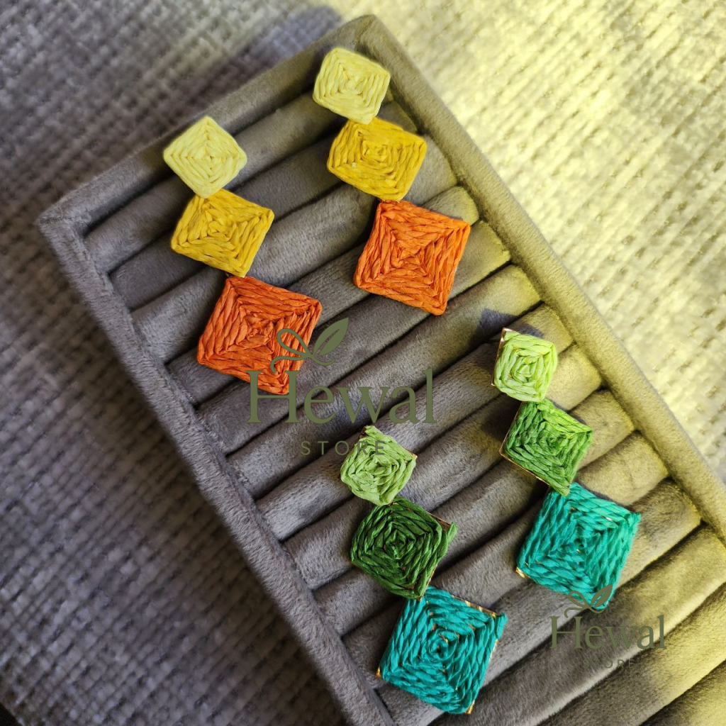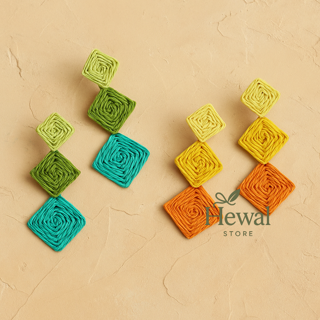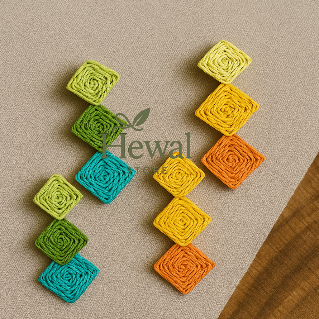 گوشواره آویز حصیری رنگی