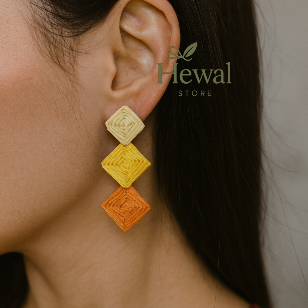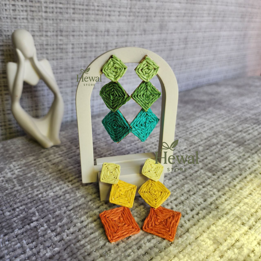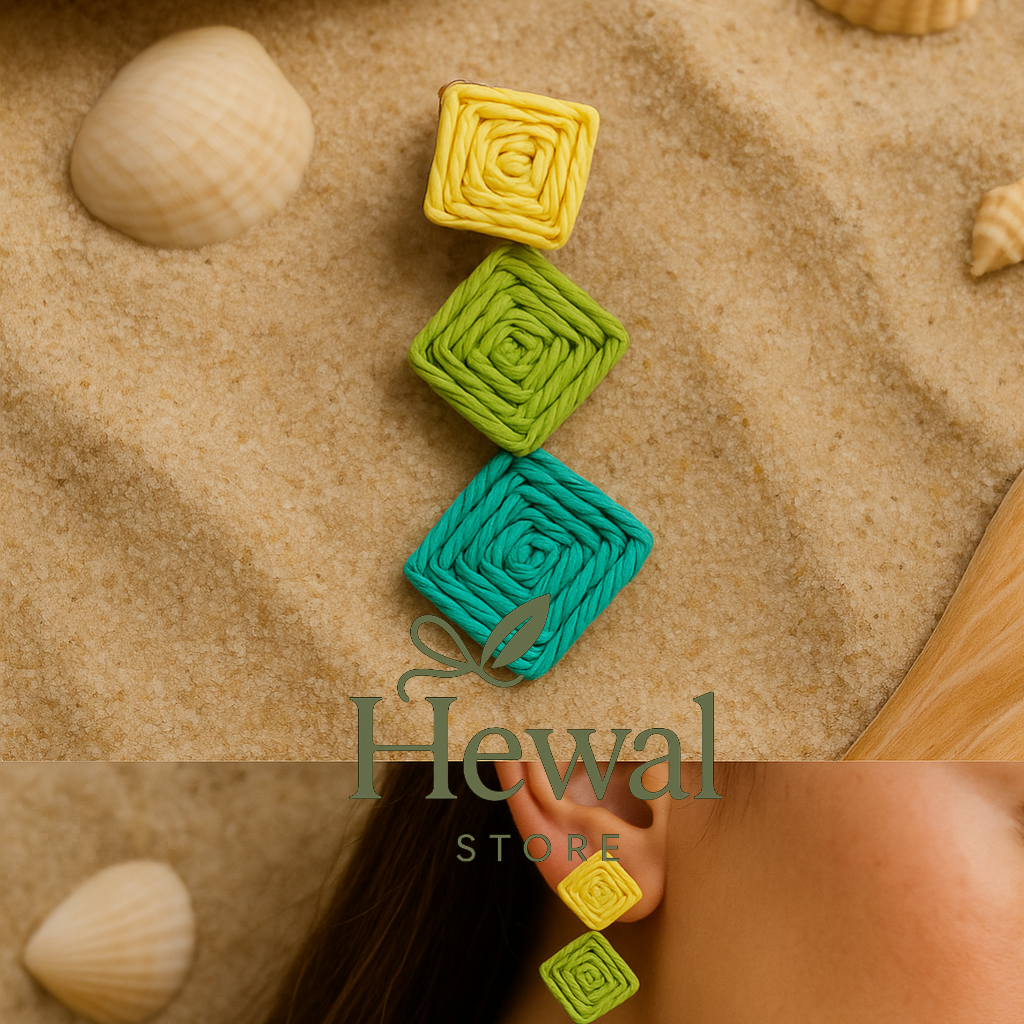 گوشواره حصیری رنگی پینترسی طرح لوزی سه عددی
