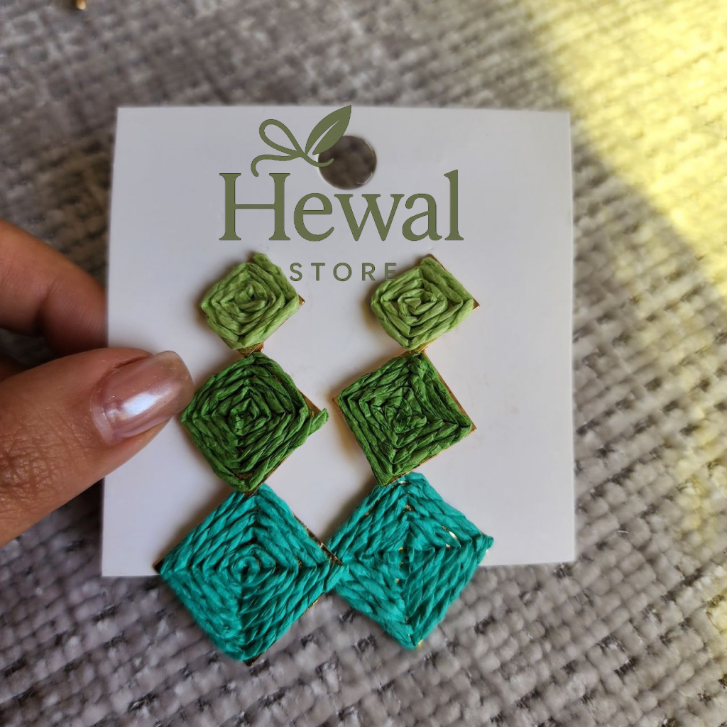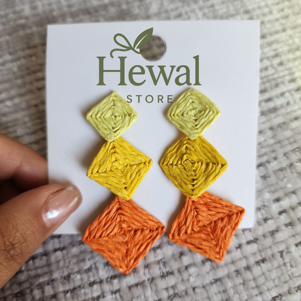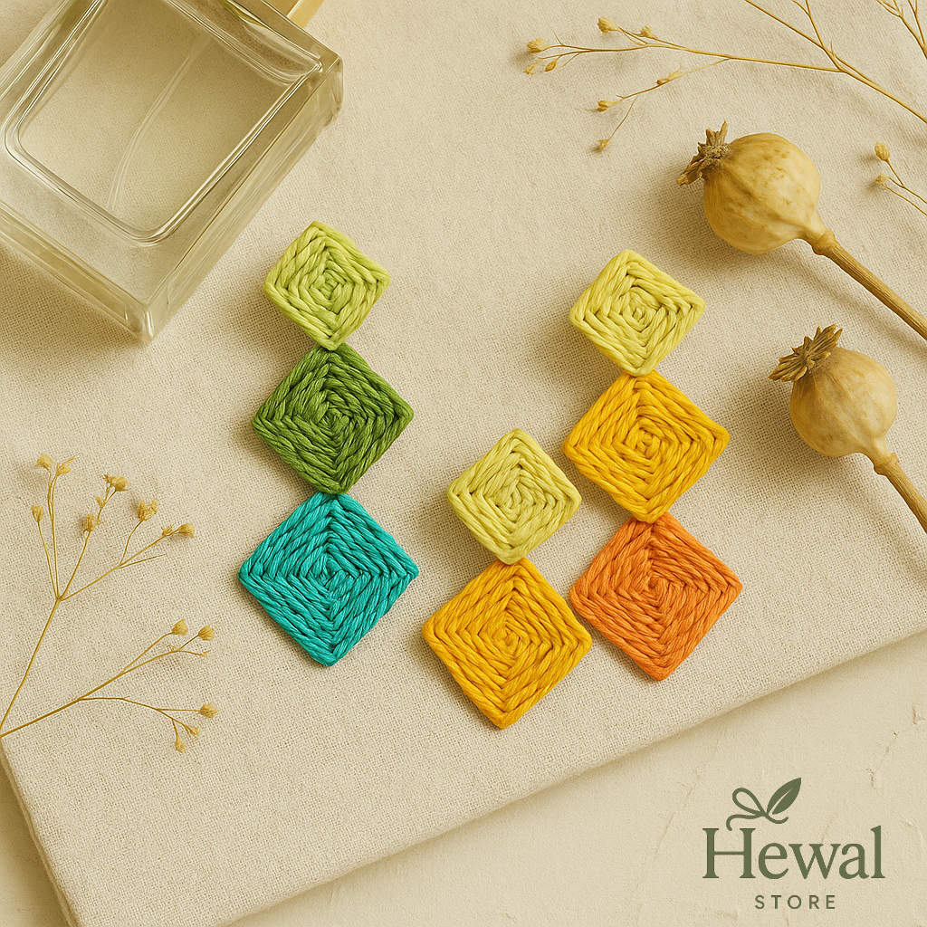گوشواره حصیری رنگی پینترسی طرح لوزی سه عددی